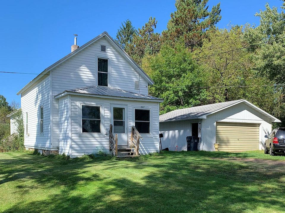 (356/PB) Looking for an affordable home on a super-sized lot? Check this one out! This 1 ½ story 2-3 bedroom home located on 3rd Ave N in Park Falls is situated on a 1.5+/- acre (134x330+/- ft) lot. Plenty of rear yard area for a patio with firepit, garden, additional storage building or addition to the home or watching visiting wildlife. Well-established neighborhood within 1 block of schools and the athletic field complex. This offering features a living room, dining room, kitchen, full bath, bonus room that could be bedroom 3, enclosed front and rear porches on the main level. Upstairs there are 2 spacious bedrooms. Deferred maintenance is evident. Full basement. 2-car detached garage. Call today! Asking $72,900. 2024 Taxes: $1,613. (Part of the NE SE, 14-40N-1W)