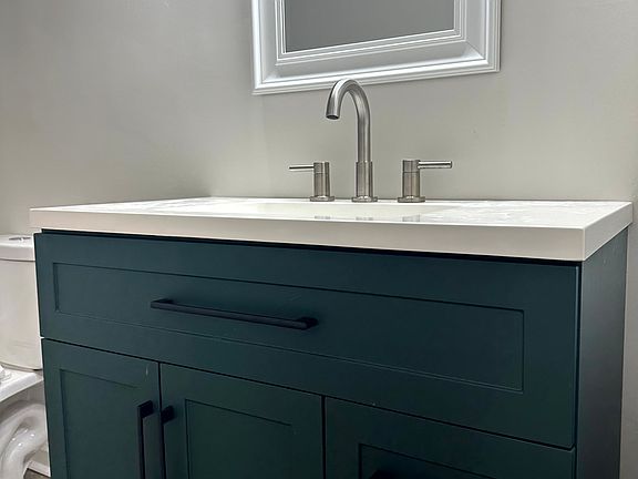Enjoy a luxurious bathroom renovation with a brand new tub/shower combo, elegant vanity, and contemporary finishes.