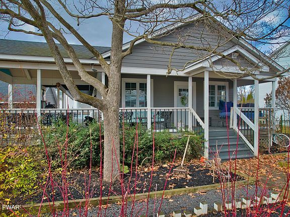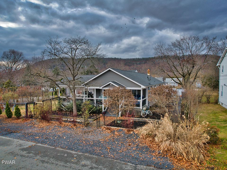 Welcome to 807 Avenue P, a stunning three-bedroom, one-bath ranch home in Matamoras, Pennsylvania. This unique property sits on a spacious corner lot, beautifully fenced and landscaped, creating an inviting outdoor oasis. The expansive yard features raised bed gardens and a root cellar, perfect for gardening enthusiasts. Relax on the incredible wraparound porch, complete with a cozy porch swing, a stylish pergola and thoughtfully designed furniture. Inside you'll find a beautifully renovated kitchen showcasing quartz countertops and stainless-steel appliances. The custom cabinetry, featuring specialized inserts, is sure to delight any cooking enthusiast. The living room is equally impressive with stunning custom wood ceilings, an oversized ceiling fan, and a high-end, slow-burning wood stove that adds warmth and elegance to the space. From the living room you can reach the versatile loft space that provides endless possibilities, whether you need a recreational area or extra storage. Three bedrooms provide ample room and a full bath with washer and dryer hookup on the main level adds convenience. Hardwood floors flow throughout the home adding to the high-end finishes. Additionally, this home boasts a large basement with a bonus room that can be adapted to suit your needs. Completing this exceptional home is an impressive three-car garage, with the middle bay engineered for a lift, making it perfect for car enthusiasts. With its beautiful features and convenient location, this home is a perfect blend of comfort, style, and accessibility, all within walking distance of Airport Park. Don't miss out on this unique opportunity!