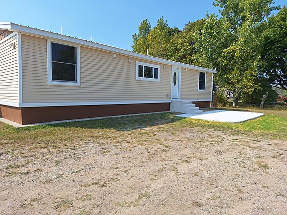 Exterior features: front and rear stoop with 4 steps up to house, rear porch appx 220 square feet. Back yard view: open meadow with big sky view.