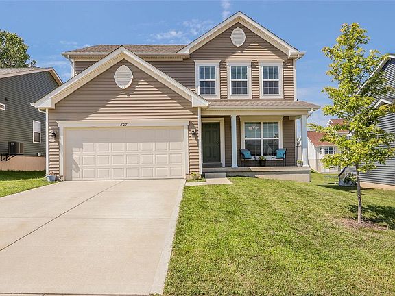 Welcome to 807 Caspian Lane- this 2 year-old 4 bed, 2 1/2 bath spacious home is tucked away in the highly sought-after Carlton Glen Estates Subdivision located in the Wentzville School district. The main floor features an open-concept kitchen, dining, and living area perfect for entertaining, with a half bath conveniently located for your guests. The kitchen boasts plenty of counter space, a center island, and beautiful tiled floors. Upstairs you will find generously sized bedrooms, all with large closets and tons of natural light. The master bedroom has an en-suite bathroom with a large walk-in closet and vanity. The basement is a roughed-in, 9-ft pour which will make it easy for you to finish it for tons of additional living space. The home is within walking distance from the neighborhood pool and Quail Ridge park, making this location an outdoorsy paradise!