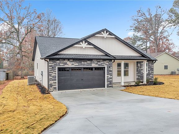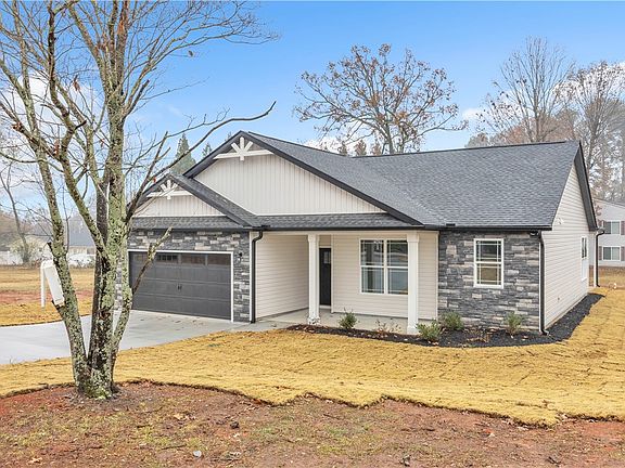 Beautiful over 1400 square foot Craftsman style home is situated on a .45 acre lot and READY TO MOVE IN!... AND at a fantastic builder priceof $274,900. Featuring stone accent on the front, vinyl siding & trim package. The Rocking chair front porch 3 bedroom with 2 bath designed for efficiency and great use of space includes a Frigidaire stainless steel appliance package with smooth top electric range, microwave, dishwasher/disposal. White Shaker Cabinets with Oil rubbed bronze pulls in kitchen and baths. This home is a open split floor plan has luxury vinyl in living area and baths, quartz countertops in kitchen and granite in baths, with some crown molding in kitchen and dining, 50 gallon electric waterheater and a covered patio great for entertaining and that morning cup of coffee.. The master bedroom is large, master bath has double vanity,separate shower and garden tub with walk in closet. House has Oil Rubbed Bronze Plumbing and Lighting. Great location off of Hwy 85 convenient to Anderson, Hartwell, Piedmont and Easley. DOT will be finishing the driveway. Call for your private showing today! The Builder has 2 additional homes in the area!