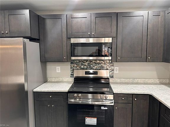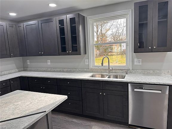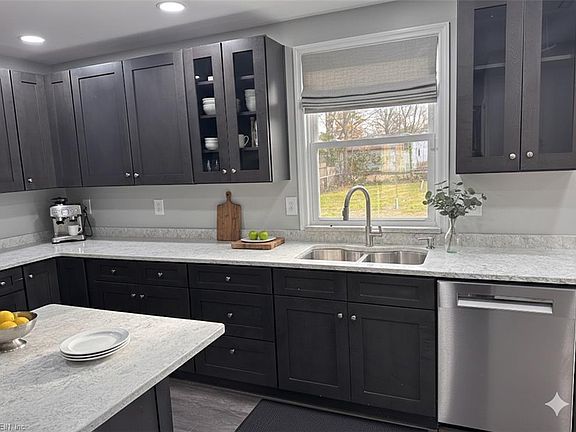 Discover modern comfort and eco-friendly living in this upgraded 3-bed, 2-bath home in Collinswood, Portsmouth! Featuring an open-concept layout, refreshed kitchen and fully renovated baths, brand new refrigerator, new microwave, new range, LVP flooring, and resurfaced hardwood in bedrooms. Enjoy a new roof, solar panels, geothermal heating & cooling, and a heat pump water heater for year-round efficiency. The primary suite offers a double vanity and walk-in shower. Outside, relax on the large deck overlooking a & 1/4 acre lot with young fruit and nut trees, plus a large storage shed. Convenient to City Park, Rivers Casino, and Chesapeake Square Mall, with quick access to military bases, shipyards, Olde Towne, and Downtown Norfolk. Great for first-time buyers, downsizers, or anyone seeking sustainable living in a prime location!