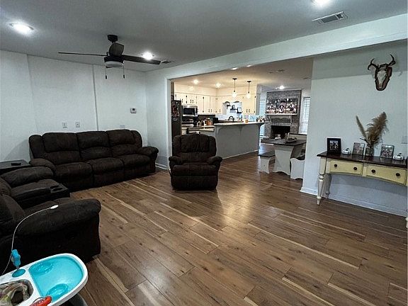 As you enter, you'll be greeted by a large, open floor plan ideal for hosting family gatherings and creating lasting memories. The kitchen has updated stainless steel appliances, and there is plenty of room in the dining area for large gatherings. Two generously sized bedrooms are situated to the right of the entryway, sharing a convenient Jack-and-Jill bathroom.