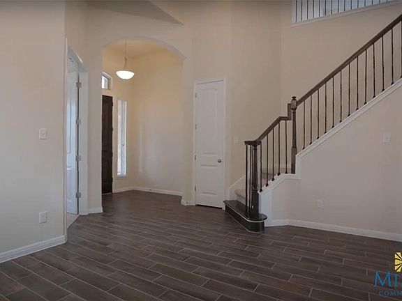 Cozy wood fireplaceFormal diningSleek quartz countertopsPrivate studyMedia roomStriking iron stair railsWood-grain ceramic tile