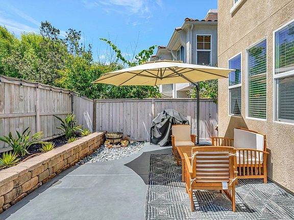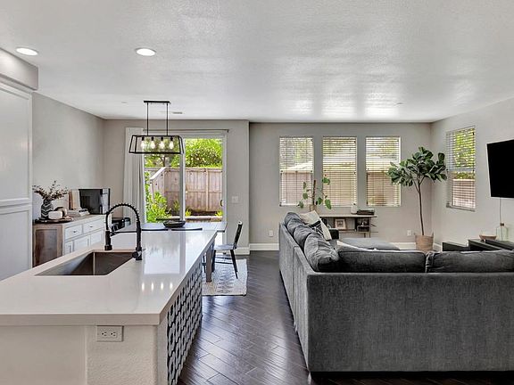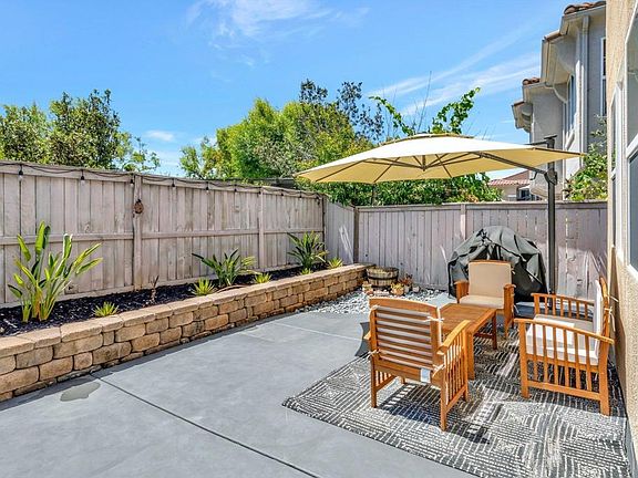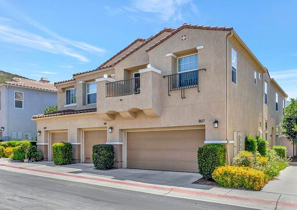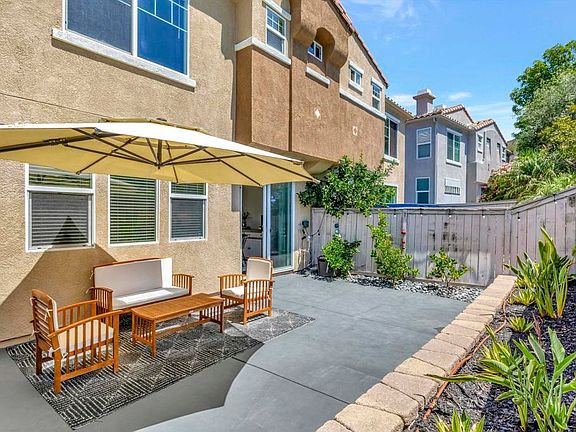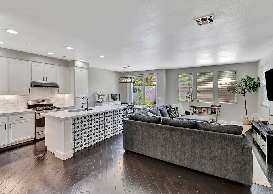 Experience the best of San Marcos living in this beautifully maintained townhome, the largest model within the gated community of Campana at Rancho Coronado. Offering 1459 SqFt, 3 bedrooms, 2.5 baths, plus an office/bonus space, this private end-unit home enjoys mountain views and exceptional privacy inside and out, with no neighbors behind. The open-concept main level features engineered wood floors, a remodeled kitchen with stainless steel appliances, and a large island with quartz countertops, a spacious living room, and a dining room with sliding doors that open to a sunny private backyard patio — perfect for outdoor living and entertaining. Three bedrooms can be found upstairs, including the sun-drenched primary suite with vaulted ceilings, a walk-in closet and a spacious en-suite bathroom. Two secondary bedrooms share a full bath in the hallway as well. Additional highlights include a flexible office/den on the main level, a half-bath/powder room, and an attached 2-car garage with side-by-side laundry. Additionally, the VA-approved Campana complex offers a heated pool and spa, two playgrounds, a dog park, guest parking, and access to scenic hiking trails. Offering a coveted location on the quiet side of this gated community and close proximity to CSU San Marcos, shopping, dining, highly-rated schools, and major freeways, this home presents exceptional value whether you’re looking for a primary residence or an investment opportunity.