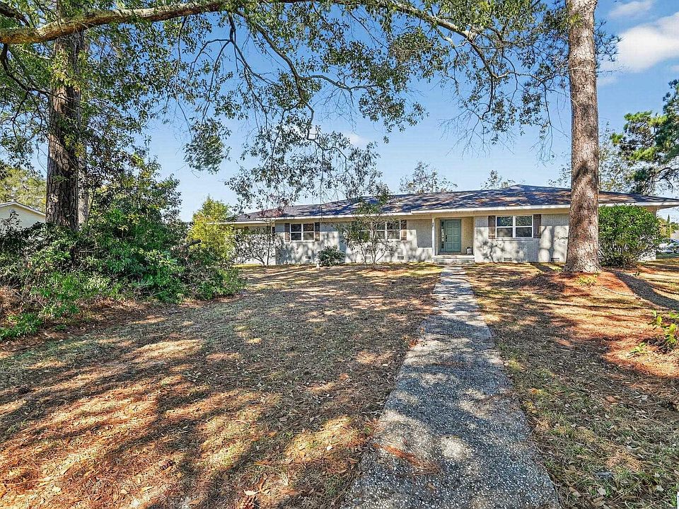 Great Location! Nearly 3,000 sq.ft. of beautifully remodeled living space on almost one acre in charming Opp, AL. This spacious 5-bedroom, 3-bath brick home sits on a large corner lot and features two primary suites, each with private baths and walk-in closets. Enjoy peace of mind with a 2021 architectural shingle roof, double-pane windows, and two serviced HVAC units.Inside, you’ll find an inviting open-concept layout with custom kitchen cabinets, granite countertops, and Whirlpool stainless steel appliances, including an armoire-style refrigerator. The home has been freshly painted in modern tones — light grey in common areas, blue accents, and a relaxing lavender suite. Exterior highlights include two metal outbuildings, a double carport, and a beautifully landscaped yard with a chain