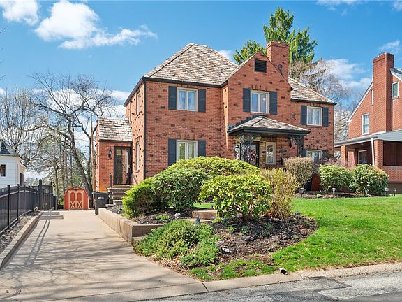 Create your own happily ever after in this charming English Tudor brick home with TWO FIREPLACES, beautiful archways, plaster walls large closets, plus any modern amenity and update you can imagine. This home has been loved and well-maintained! The extra-large living room has a gas fireplace with a stone exterior and extra windows to let in natural light. The family room also features a gas fireplace, vaulted ceiling, built-ins, and a sliding glass door leading to the beautiful deck, which is perfect for entertaining or a quiet evening with friends or family. The exposed aggregate driveway, custom masonry walls, and a new furnace and air conditioner were recently installed, and the slate roof is well maintained. The shed at the back of the property has newly installed shelves and lots of storage space for your snowblower, lawnmower, and lawn equipment. Located in highly sought out North Hills Estates with easy access to McKnight Road and 279, it will take only minutes to get downtown.