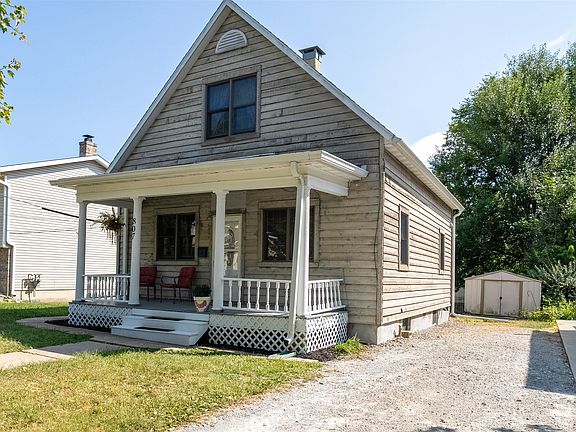 Nicely updated home across from Emerson Park! In a quiet, established east Bloomington neighborhood, this charming 3BR/1BA home features rustic stained wood siding and a welcoming front porch. The main level offers a comfortable living room, separate dining room, and a large eat-in kitchen, plus two bedrooms and a full bath. Upstairs you'll find the third bedroom with an adjacent bonus room-perfect for an office, playroom, or extra closet. The basement includes a finished laundry area with the remainder unfinished for storage or a workshop. Outside, a large deck overlooks the huge backyard with a privacy fence installed in 2020. Multiple sheds for additional storage and off-street parking. Great location near Constitution Trail and Downtown Bloomington. Also in Oakland school district. Move-in ready and waiting for a new owner!