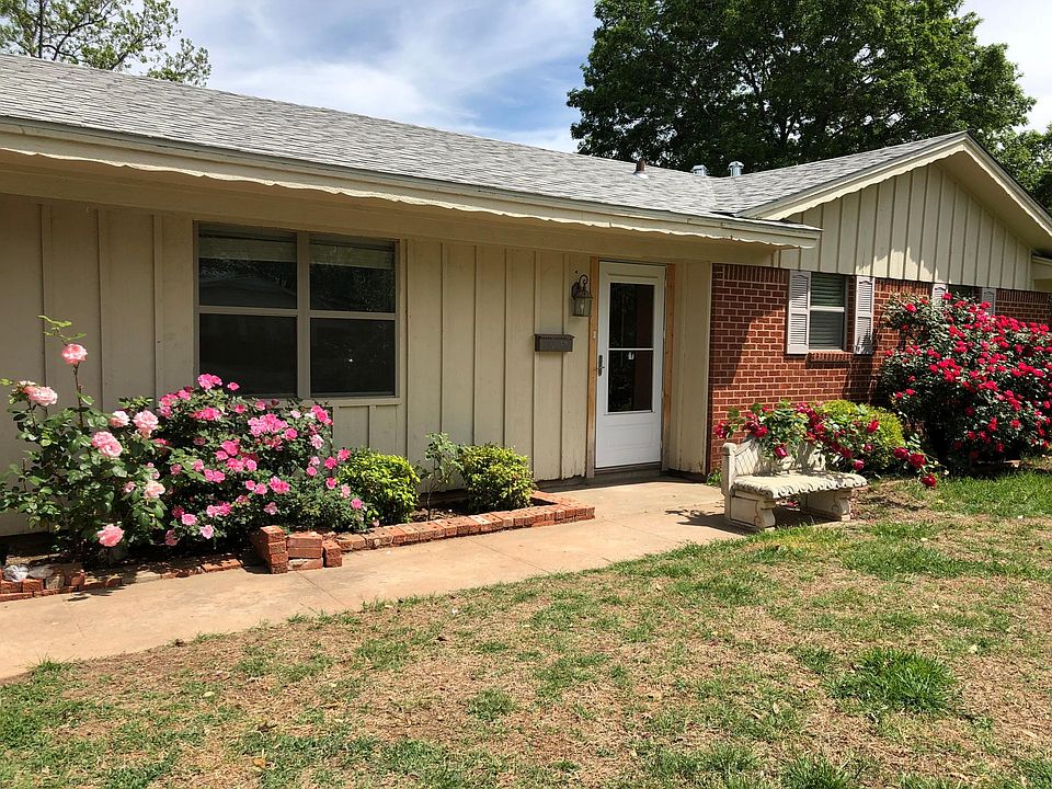 Cute 3 bedrooms, 2 baths in a quiet and friendly neighborhood, tiles throughout (wood looks tiles in living room and bedrooms), L shape kitchen with stainless steel appliances including dishwasher, refrigerator, vent A hood, and smooth cook top stove/oven, European lightings, ceiling fans with remote controls, fresh paint in bedrooms and bathrooms, new shower. Washer and dryer connection. Nice size of yard, big storage building, inground storm shelter, and two cars garage with garage door opener. Small dogs under 40 lbs are welcome with $200 one time fee per dog, no cat or other pets, $1,600 deposit, 1st and last month rents due at move in. Minimum 1 year lease