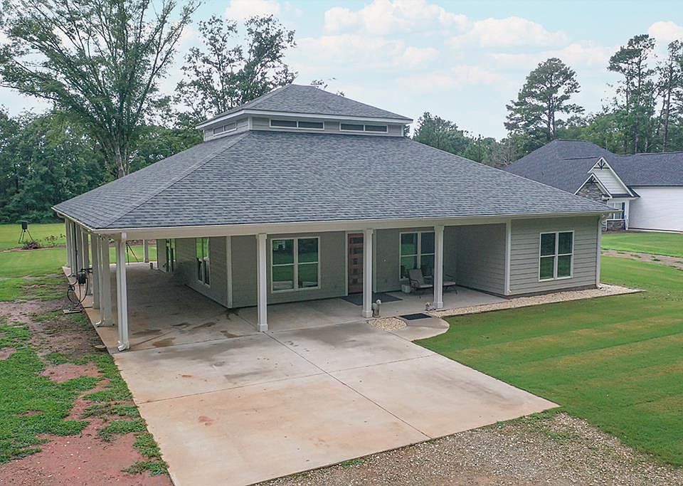 Welcome to country living with comfort and convenience all on one level. Built in 2021, this thoughtfully designed home offers over 2,000 square feet of open living space, perfectly suited for anyone who values easy accessibility or simply desires the ease of single-story living. This home was built with accessibility in mind—featuring wide doorways, no steps to enter from the porch or into the home, and a layout that makes moving around simple and comfortable. Whether you're seeking handicap accessibility or just want the peace of mind that comes with barrier-free living, this property delivers. Inside, the oversized living, dining, and kitchen areas flow seamlessly together, creating a spacious open concept that's ideal for gatherings, family time, or entertaining. Large windows invite in natural light, while the thoughtful floor plan ensures both comfort and convenience. Outside, enjoy a covered wraparound porch stretching across three sides of the home—perfect for morning coffee, afternoon shade, or evenings with friends. Sitting on more than 2 acres, the property offers a mix of mature trees and open yard, with a fully fenced backyard that's ideal for pets, children, or outdoor activities. An outbuilding provides flexible space for a workshop, hobby area, or additional storage, giving you plenty of room to create what you need. With its modern construction, wide-open spaces, and peaceful rural setting, this home is ready to welcome you—whether you're looking for handicap-friendly features, a low-maintenance lifestyle, or the quiet charm of country living.