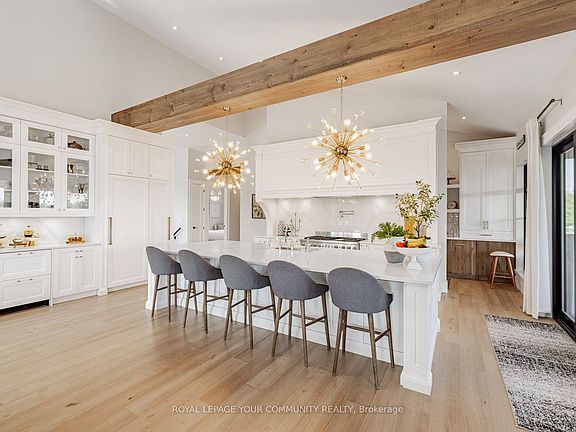 Welcome To 807 Ganton Road. This Stunning 4 + 2 Bedroom, 5 + 1 Bathroom Ranch-Style Bungalow Offers Over 7,200 Sq. Ft. Of Finished Living Space On A Picturesque 9.3-Acre Lot. Inside, You'll Find Soaring 18-Foot Vaulted Ceilings, White-Oak Flooring, And A Thoughtfully Designed Layout Filled With Natural Light And Scenic Views Of The Surrounding Farmland. At The Heart Of The Home Is A Chefs Kitchen Featuring A Massive 12.5-Foot Quartz Island With Seating For Six, Custom Adamo Cabinetry, A Built-In Thermador Fridge And Freezer, Two Built-In Jenn Air Beverage Fridges, A Breakfast Bar, And A Butlers Pantry Equipped With A Second Sink And Built-In Dishwasher Ideal For Both Entertaining And Everyday Convenience. The Kitchen Opens To A 3-Season Sunroom Overlooking Rolling Fields, Offering A Serene Place To Relax. The Spacious Family Room Boasts 18-Foot Vaulted Ceilings, A Cozy Fireplace, Three Walkouts To The Rear Deck, Automatic Window Coverings, And Panoramic Views Of The Property. The Primary Bedroom Is A True Retreat With Vaulted Ceilings, A Fireplace, A Walkout To The Deck, Two Walk-In Closets, And A Luxurious 5-Piece Ensuite With Double Vanities. The Walkout Basement Is Designed For Entertaining, Featuring A Full Wet Bar With Ample Cabinetry, A Bar Fridge, A Keg Fridge With Built-In Tap, And A TV. You'll Also Find A Dedicated Home Theatre With Built-In Surround Sound, A Professional Office, And A Spacious Gym. A Separate 2-Bedroom, 1-Bathroom Coach House Adds Extra Living Space Perfect For Guests, Extended Family, Or Potential Rental Income. Included is a 22 Kilowatt Generac Generator That Ensures The Home Never Experiences A Blackout. Current Zoning Allows For Home Occupation or Home Industry. Just Minutes From Town, This One-Of-A-Kind Estate Blends Luxury and Privacy In A Truly Exceptional Setting.