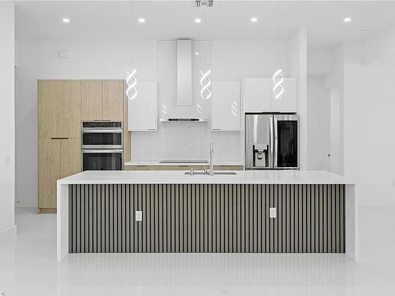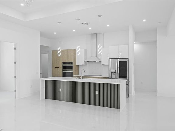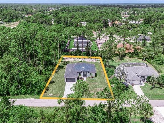 Amazing Brand New Home, High-end Finishes, on a 1/2 Acre Cleared Land, Move-in ready!! Chic sophistication, modern design, and a lifetime of memories to be made await you at this BRAND NEW construction home in sought after and growing Lehigh Acres with nearly 1,900 SqFt, 3+ Den, 2 bathrooms, and strong impact windows and doors throughout. Curb appeal is in full effect when pulling up to this stunning property situated on ½ an acre with a paver driveway and pathway to the front door, fully landscaped, and gorgeous exterior lighting. From the French Door entryway, you are greeted by porcelain tile flooring throughout along with brand new custom LED light fixtures, frosted glass doors, impact resistant windows and exterior doors, and luxury finishes from top to bottom down to the baseboards. A true chef's kitchen; enjoy stainless steel appliances, stainless steel hood, quartz counters and backsplash, a cascading center island, soft close cabinetry and drawers, disposal, and a vantage point that is made perfect for entertaining any gathering. The dining area also comes equipped with modern and custom light fixtures. Your living area is prestigious with access to the lanai. You will not need a vacation when you have a lanai like this one with its outdoor kitchen including granite counter and stainless steel finishes, natural shiplap wood ceiling, fans, and recessed lighting. Build the pool you have always wanted to maximize this resort style home. The primary bedroom is a real treat to wind down the day with your modern glass shower, double vanity, water closet, and two walk-in closets with built-in closets. A home office, extra space for out of town guests, or whatever else you may envision can be used in the den off from the living area. The additional guest bedrooms enjoy tons of natural light, frosted double closets, and ceiling fans. Peace of mind is enhanced with your 2 car garage with epoxied flooring and separate entrance from the exterior, laundry room in residence with an additional large pantry, impact resistant doors and windows, and close proximity to shopping and dining. This area of Lehigh Acres is growing with tons of new commercial space attracting many businesses. Your forever Florida home is calling!