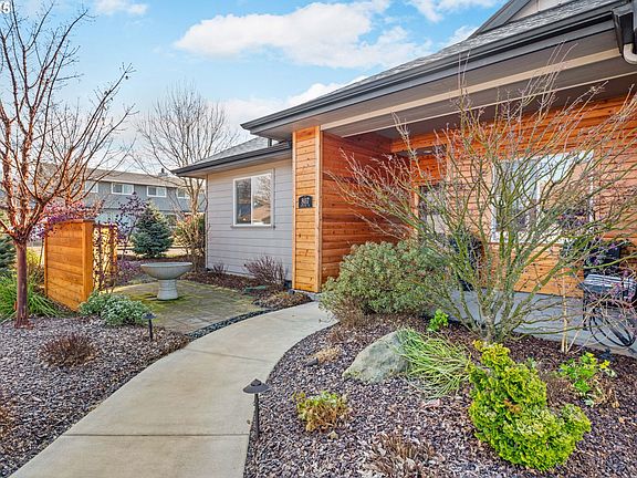 Welcome to this exquisite custom home by Anslow & DeGeneault in the Osprey Park Subdivision! This beautiful single level, one owner home was completed in December of 2017. It is designed for effortless living and entertaining with an open concept living space. It is adorned with designer fixtures and features, including hardwood floors, ceramic tile, and custom Hunter Douglas wood blinds. The vaulted living room offers tall windows for natural light and a gas fireplace. The kitchen features stainless steel Kitchen Aid appliances including refrigerator, gas stove, built in microwave, and quiet dishwasher. The quartz countertops with subway backsplash make a statement. The owner suite is complete with two walk-in closets, a double vanity with custom lighting, and a walk-in shower. All bedroom closets have built in organizers for great storage. There is a nice separation of space between the owner’s suite and other bedrooms. The office with French doors could be a fourth bedroom. The yard is professionally landscaped with ease of care in mind without compromising beauty. The exterior wood accents on the home flow nicely with the fencing and outdoor lighting. The yard is fully fenced and irrigated with blueberry bushes and espalier apple and pear trees. The large, covered patio comes with a gas BBQ hook up, great for entertaining, and there is a Hot Springs Hot Tub to complete the package. The garage is finished and insulated and there is fenced RV parking with hook ups. This home offers it all and is in the perfect location, only blocks to the Willamette River with miles of trails for walking and biking! It is also close to Autzen Stadium, local parks, restaurants, stores, and both major hospitals. This home is a MUST SEE!