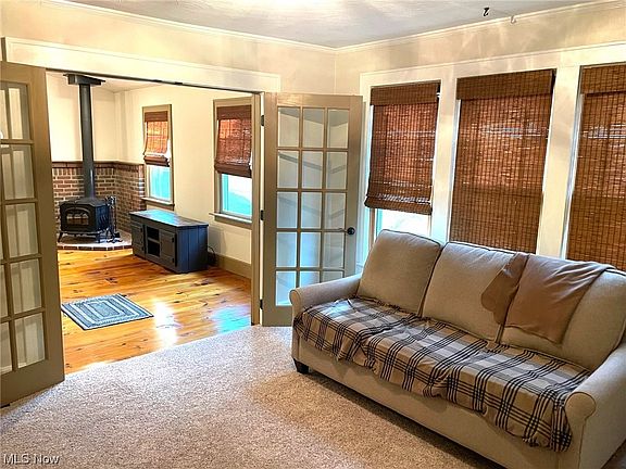 Charm and Delightful Design...This home boasts a convenient city park location, offering 2 bedrooms with walk-in cedar closets, cozy living room with fireplace and adjacent sunroom with French doors, dining room/den, spacious kitchen, and huge great room with double doors leading to a covered porch, that overlooks the fenced backyard. The 24x32 Garage offers a wood burner and a 12x32 loft area for storage. The Garage also offers an additional covered porch with bar area. This is a must-see home!