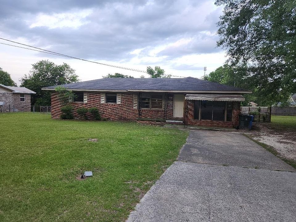 With a little TLC this home can be revived. Spacious Dining off Kitchen w/Brkfst Bar, Bonus Room (enclosed Garage), spacious Laundry, Wood Flooring in Lvrm/2 Bdrm's & Hall. Back Yard is Fenced with a Rear Covered Patio & home has a Covered Porch.