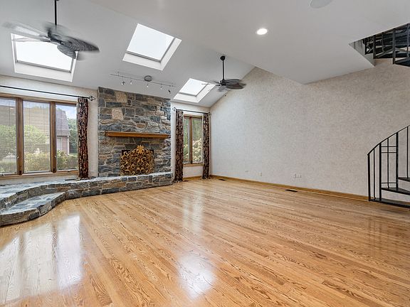 Welcome to this stunning 4-bedroom, 4.5-bathroom all-brick home in Lisle, offering the perfect blend of elegance, functionality, and convenience. Set on a beautifully landscaped lot with an irrigation system, this property boasts an attached 2-car garage plus an additional 3.5-car detached garage in the back-ideal for car enthusiasts, hobbies, or extra storage. A wraparound asphalt driveway, Generac generator, and inviting covered front porch add both practicality and charm. Inside, you'll be greeted by a spacious living room highlighted by a striking floor-to-ceiling stone fireplace and three skylights that flood the space with natural light. A spiral staircase leads directly to the luxurious master suite, which features a tray ceiling, two walk-in closets, a gas fireplace, makeup station, wet bar, and a spa-like ensuite with dual sinks, jetted tub, and standalone steam shower. Three bedrooms are located upstairs, while the fourth is on the main level-each offering its own walk-in closet. The chef's kitchen is designed with storage in mind, showcasing oak cabinetry, granite countertops, three skylights, recessed lighting, and a dining room just off the space for easy entertaining. The oversized main-level laundry room doubles as a mudroom and also houses a convenient half bath. Hardwood floors flow throughout much of the first floor, adding warmth and character. The finished full basement offers even more living space and includes a full bathroom, while a walkout access through the garage staircase provides flexibility. Additional updates include dual-zoned heating and cooling, a 2020 tankless hot water heater, and four full bathrooms-one on every level for ultimate convenience. Enjoy outdoor living on the brick paver patio overlooking the professionally landscaped backyard. This home is just a short walk to the train station, minutes from major highways, schools, shopping, and restaurants-making it an unbeatable location.