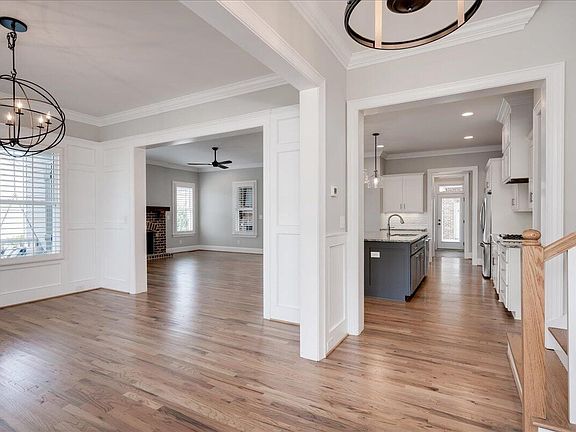 As you step inside, you'll be greeted by hardwood floors and a formal dining area off the foyer. This 5-bedroom, 5-bathroom house features a cozy gas fireplace in the great room. The chef-inspired kitchen boasts sleek countertops, stainless steel appliances, and ample cabinet space, making meal preparation a delight. The covered screen porch, complete with a wood-burning fireplace, overlooks the yard and offers the perfect retreat.