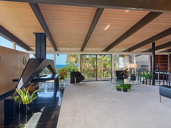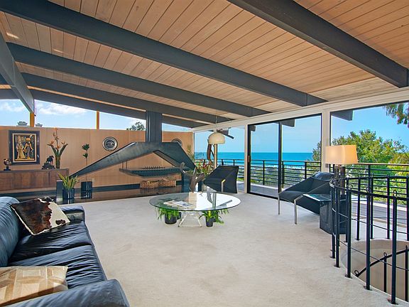 Presenting a unique opportunity to own this Mid-Century Modern residence, resting at the end of a cul-de-sac on a 0.93-acre parcel, where you will enjoy peaceful, park-like grounds and panoramic views of the ocean, canyon and coastline. Light-filled and lovely, the open interior showcases vaulted beamed ceilings, clerestory windows and dramatic walls of glass creating a tranquil ambiance throughout. 2 bedrooms, 2 baths plus an office/optional BR are conve...boast the best views while allowing for single-level living should you so desire. Stunning living areas flow from one to the next with an artfully designed fireplace on prominent display. Downstairs you will find a sprawling family room with walnut parquet flooring, as well as the 3rd bedroom and bath, separated by a partitioned wall that can fold back to create a humongous great room. Wraparound decks on each level provide the perfect environment to dine al fresco or just revel in the coastal breezes and vistas. Expansive and serene, the breathtaking grounds evoke the feeling of having a private park as your backyard with plenty of space to channel your inner green thumb...the possibilities are endless.