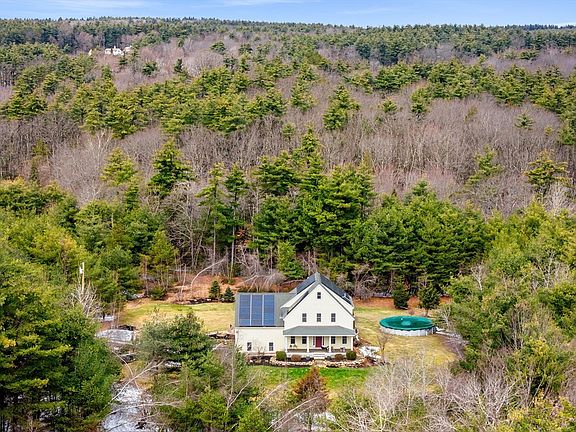 Escape to your own private oasis with this stunning country farmhouse nestled on just under 5 acres in the serene town of Ashby, MA. Set far back off the road, privacy abounds. As you approach, you'll be greeted by the gentle sound of a babbling brook and lush gardens that frame the entrance. The expansive lawn invites outdoor activities, while the pool, patio, and covered pergola offer ideal spots for summer gatherings and al fresco dining under the stars.Inside, the charm continues with a spacious floor plan featuring 3 bedrooms, 2.5 baths, and a large bonus room perfect for entertaining guests or creating a cozy retreat. The primary bedroom suite offers comfort and convenience with two closets and a generously sized bathroom. The updated kitchen is a chef's delight, boasting modern appliances and ample counter space for meal preparation. This home is move in ready and waiting for your personal touch!
