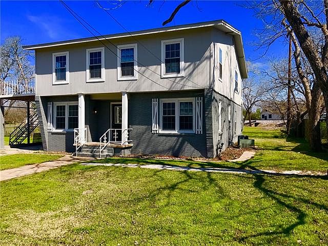 This 5Bd/3Bth is set on 1/2 acre lot located in the heart of historic downtown Elgin. This home comes equipped with a wonderful backyard deck, and a sun patio above the carport that is perfect for entertaining guests. 400 Sft living room dawns beautiful cedar beams with original brick fireplace centering the room. New laminate wood floors installed downstairs, and plush carpet upstairs of the home. Galley kitchen equipped with stainless steel appliances, black granite counter-tops, and white cabinets.