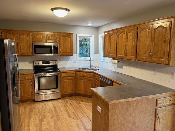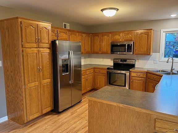 Discover your next home in a beautifully renovated 3-bedroom, 2-bath gem offering 1,800 sq. ft. of comfort and style in north central Kansas City! Enjoy two spacious living areas, an inviting eat-in kitchen with new stainless-steel appliances, and hardwood floors in the kitchen and dining space. The primary suite includes a 13'4" x 13'5" bedroom, a walk-in closet, and bathroom with a separate tub and shower. Two additional bedrooms (10'3" x 15' and 10' x 11') provide plenty of space, complemented by a second full bath with a tub/shower combo. Features include washer/dryer hookups, a 2-car garage, new deck, basement storage, and refinished hardwood floors and new carpet throughout. Located in a family-friendly neighborhood near Fox Hill Elementary and New Mark Middle School in the Staley School District, this home is perfect for modern living.