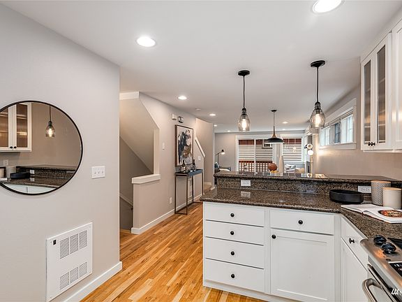Refreshed end-unit in a neighborhood community of townhomes that feels like a village - constructed back when they were solidly built for the ages, with generous proportions and thoughtful details. This one has all the things; each bedroom has its own ensuite bath, plus a powder room on the main floor and gorgeous real oak hardwood floors throughout. With an attached garage, outdoor entertaining space, walk-in pantry, gas fireplace, and ductless mini splits for heat and AC, this checks all the boxes. No HOA dues, and convenient location next to QFC, Carkeek Park Trail, Chuck's Hop Shop and Dicks. Ballard and Greenwood adjacent. Freshly painted with new fixtures throughout. Pre-inspected.