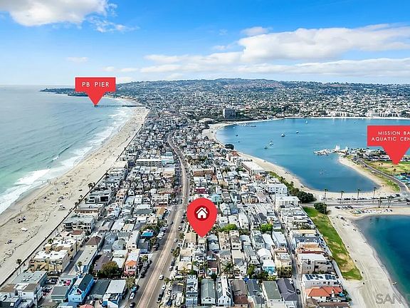 Discover the vibrant lifestyle of Mission Beach at 807 Ostend Court! This 3-bedroom, 2.5-bathroom home offers an incredible location just steps from the lively Pacific Ocean and the peaceful Mission Bay. Enjoy a range of activities, from paddleboarding, surfing, and sailing to beach volleyball and biking—all within your reach in this energetic community. The spacious rooftop deck is perfect for soaking in the Sea World fireworks and taking in 360-degree views of the bay and ocean. The floorpan is easy. The rare 2-car garage adds extra value, providing ample storage for all your beach gear and vehicles. Whether you're looking to invest, generate income, or enjoy the coastal life, 807 Ostend Court is your gateway to the best of Mission Beach.