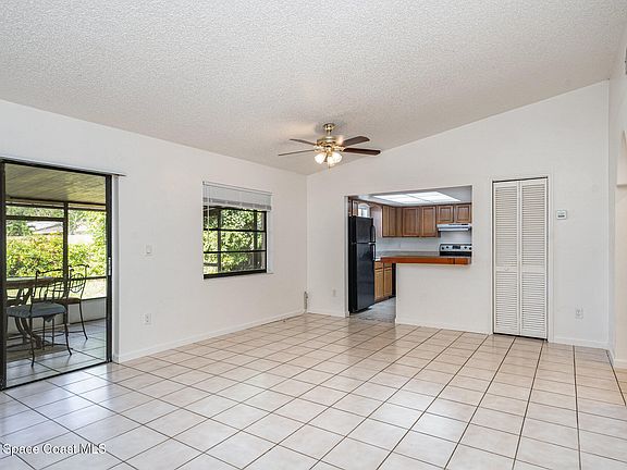 Wonderful location in the heart of Rockledge on a quiet cul-de-sac. Concrete block half duplex with vaulted ceilings in the living room. Spacious 3 bed, 2 bath. Kitchen has great layout with breakfast bar, pantry and laundry hookups plus a window overlooking the fenced backyard. Living area has sliders to screen enclosed back porch. Tile floors throughout all common areas. Primary bedroom has spacious private bath with double sinks and tub/shower combo. All major systems in great condition: HWH 2022, AC 2018, Roof 2018. No HOA! Walk/Bike to Dick Blake Park with 74 acres to explore plus a playground, soccer fields, bike and walking trails and skate park!