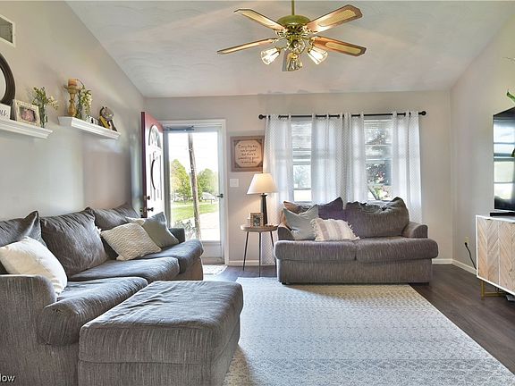This move-in-ready 3 bedroom ranch in Struthers is ready for you! As you enter the home you'll notice the living room's vaulted ceiling, the large picture window that fills the room with natural light, a wood-burning fireplace and brand new luxury vinyl plank flooring that flows into the kitchen. The spacious kitchen has beautiful cabinets, custom countertops, all appliances, room for dinette set and sliding doors that lead to the new concrete patio and backyard.