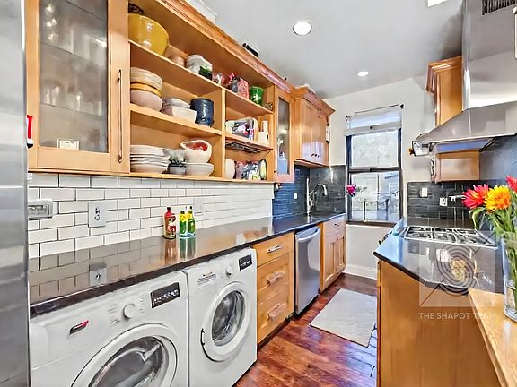 Entering Apartment 3A just might take your breath away. The open, gracious layout is coupled with warmth and beautiful and thoughtful renovations. The living/dining room combo is complete with hardwood floors and a stunning oversized closet for seldom seen storage. A tastefully renovated and windowed kitchen is ideal for home chefs or take-out aficionados both, who will appreciate the stainless-steel appliances surrounded by abundant, sleek countertops complemented by up-to-the-ceiling cabinetry and open shelving to showcase your best kitchenware. A convenient breakfast bar is open to the living room, perfect for casual dining or a buffet when hosting. No need to compromise when furnishing the bedroom that is fit for a Queen or King plus dual exposure windows bring in the sunshine! The beautifully renovated, windowed bath features a gorgeous marble shower and stunning tile floor that will feel like a day at the spa. Add tons of closet space and an IN-UNIT WASHER DRYER for an added bonus! Pets permitted per building guidelines.