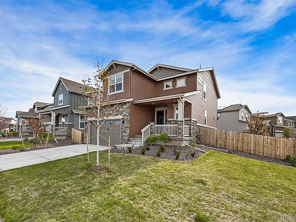 Welcome to your new home at 807 S Flat Rock Way, tucked away in the delightful Waterstone community of Aurora. Near Murphy Creek Golf Course and Buckley Air Force Base, his charming two-story home sits on a corner lot, offering picturesque views overlooking open space and scenic trails—a dream for outdoor enthusiasts. The heart of this home is the stunning kitchen, complete with a sprawling quartz-topped island, a sleek gas range, and a versatile butler’s pantry/tech space perfect for culinary adventures and everyday multitasking. The expansive main floor living room is an inviting haven for both relaxation and entertainment. Upstairs, discover a well-thought-out layout with all four bedrooms strategically placed, including a spacious primary suite featuring a luxurious shower, dual vanities, and a generous walk-in closet. The remaining bedrooms share a beautifully appointed guest bath with double sinks. And don't forget the upstairs laundry room—talk about convenience! Outside, the fenced backyard features a covered deck, offering a tranquil retreat to unwind and savor Colorado's breathtaking evenings. This home also boasts an EV charger and solar panels with a manageable monthly commitment (approximately $50/month)—modern comforts that make a difference. Combining style, comfort, and practicality in a coveted neighborhood, this home is an exceptional choice for creating cherished memories. Get ready to fall in love with where you live—welcome home to 807 S Flat Rock Way! Seller has an ASSUMABLE FHA mortgage at 5.375%.