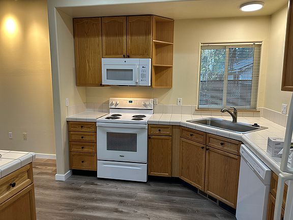 - Exterior features: 2 Full Bathrooms, 2nd Bedroom 11"4" x 13'6", 3rd Bedroom 13'5" x 11'2", 5-Star Maintenance Team, Excellent Condition, Free Online Rent Payments, Garbage included in rent, Gas Hot Water, High Ceilings, Near Fred Meyer, Near Walmart Neighborhood Market, Near Winco, New LVT in Living Space, Primary Bedroom 14'11" x 11"11", Primary Bedroom on Ground Floor, Primary Bedroom on Main, Professional Landscaping Service Included, Small Fenced Backyard, Walk In Closet