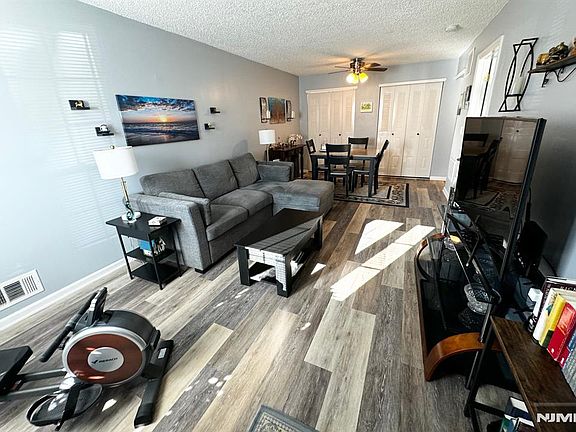 Enjoy a very comfortable lifestyle here with this first floor condo with NO STEPS! This unit has a bright living room/dining room combo, good size UPDATED EAT-IN KITCHEN with stainless corner sink & updated cabinetry, spacious bedroom with an EXPANDED WALK-IN-CLOSET, UPDATED BATHROOM with attractive tile surrounding the tub and on the floor, plus your own FULL SIZE WASHER & DRYER right in the unit. This inviting condo has stunning UPDATED FLOORING THROUGHOUT, CENTRAL AIR, NEST THERMOSTAT SYSTEM, an assigned parking space right in front of the entrance door, and it's conveniently located directly across the street from the pool, tennis courts & club house with tons of parking for all! Society Hill/Kilmer II community is a sought-after, beautiful community offering wonderful amenities, and it's ideally located close to Route 17, NYS Thruway, 287, Commuter Train & Bus Service. In addition, Campgaw Mountain with great Skiing is so close, and there are endless shopping and dining experiences within minutes of this lovely condo. The LOW TAXES and HOA Fees can't be beat! What's not to LOVE!