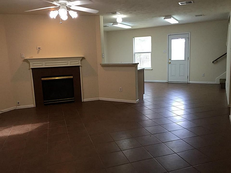 Welcome Home! CUL-DE-SAC!! Very Clean three bedroom home features all tile on first floor with large utility room and gas fireplace! Ceiling Fans in all bedrooms and Family Room! Master bedroom on first floor with large walk-in closet, upstairs has two bedrooms with Study room between! Extra Large fully fenced back yard! NO pets. Agent is Owner.