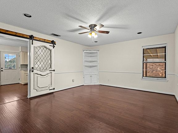 Sitting on nearly a quarter acre, this well-maintained 3-bedroom home offers both charm and updates throughout. A welcoming white-fenced front porch leads into a spacious living area with wide-plank flooring that flows into the kitchen and bath. The eat-in kitchen features abundant cabinetry, recently replaced appliances, and backyard views. Bedrooms are generously sized with ceiling fans, and the updated bath features granite counters, beadboard accents, and a tiled tub-shower. The converted garage creates a flexible bonus room, while a dedicated utility room adds convenience. Outdoors, enjoy a large private fenced backyard with extended patio, mature trees, manicured beds, and a 10x20 storage building great for hobbies or storage. There is a two-car carport providing coverage for two large vehicles. 2025-10-02