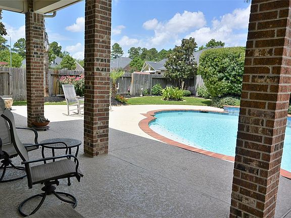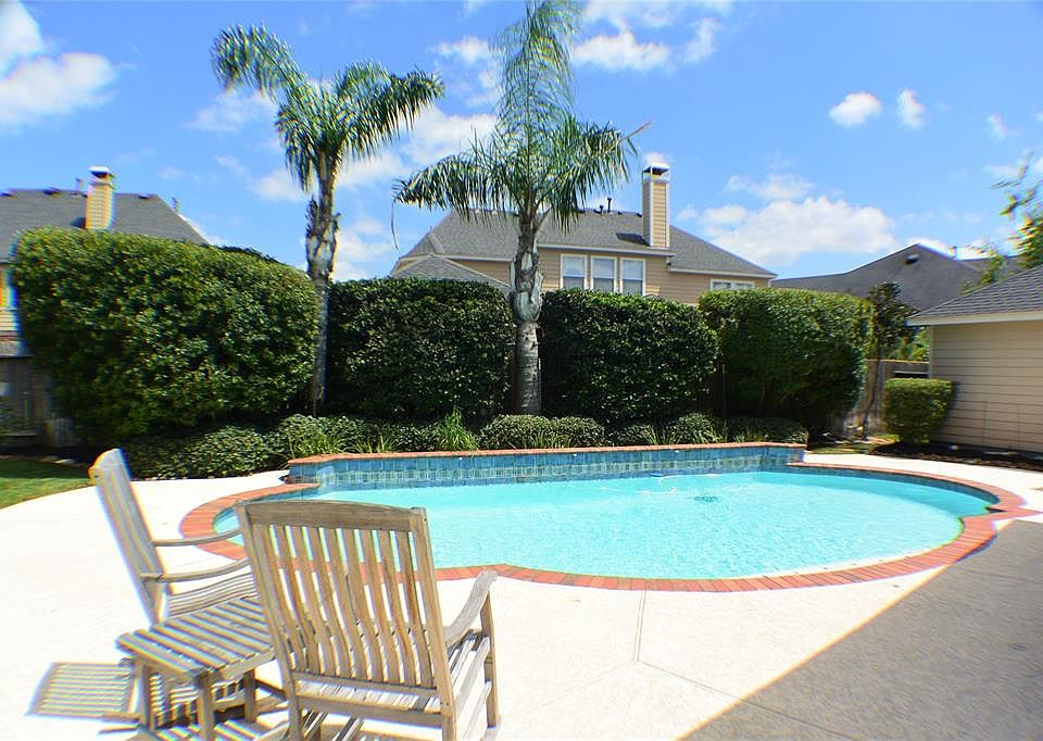 Beautifully done 5 bedroom 3.5 bath home on cul-de-sac lot with inground gunite pool and 3 car garage. Wood floors in dining room and formal living. Tile in kitchen and den areas also bottom floors feature non-breakable windows. Stainless steel appliances island kitchen with granite counter tops and designer backsplash. Wrought iron staircase Home in beautiful move in condition. Backyard features pool with covered patio and easy care landscaping. Exterior has brick and hardie plank siding for easy maintenance. Gated community. DID NOT FLOODClose to freeway