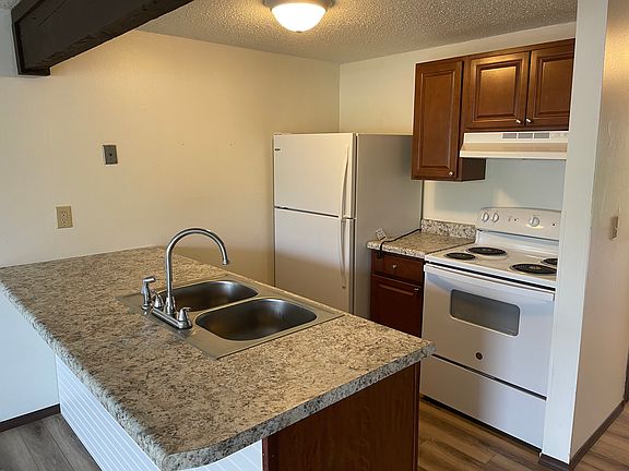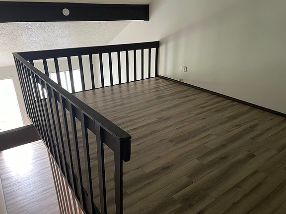 The largest 1 bedroom apartment in town with a loft. The property has a living room, kitchen with counter/bar area for eating, one bathroom, cathedral ceilings with the bonus loft room upstairs, washer/dryer hookups, and lots of storage. Easy access to walking and bike trails. Water, sewer, trash and lawn maintenance is included in rent. $25/month water/sewer/trash fee for 2nd person. No smoking strictly enforced, minimum 12 months stay, the monthly rent listed already includes a $25/month discount for using automatic monthly payments for rent. $39.95 application fee per adult for credit, income, background, and rental history check. One cat is allowed for an extra $250 security deposit and $50/month pet fee.