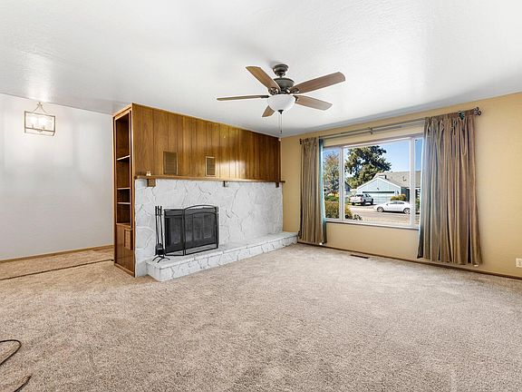 This 1,595 sq. ft. home features new flooring, fresh paint, and a welcoming layout with a cozy fireplace. The kitchen and dining area boast beautifully crafted cabinets and Corian countertops. Recent upgrades include a hybrid heat pump/gas furnace, a two-year-old water heater, and new ducting installed under the home.