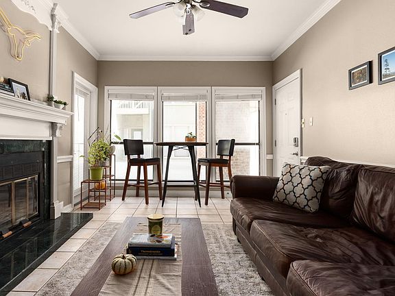 This move-in ready condo offers a comfortable and functional layout with thoughtful updates throughout. The main living area features a fireplace, neutral paint, and an open connection to the dining space and kitchen. The kitchen includes granite countertops, wood cabinets, and stainless steel appliances. Both bedrooms are spacious with good closet storage and ceiling fans. Bathrooms have been updated with tile, modern vanities, and clean finishes. The unit also includes a laundry area with full-size washer and dryer connections. Outside, a private covered balcony provides a quiet spot to relax. The building offers secure access and assigned parking. Conveniently located near shopping, dining, and major roads, this condo combines practicality with easy maintenance.