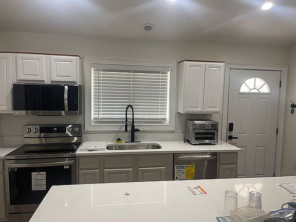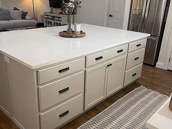 Kitchen appliancesIsland kitchenPrivate walk in closetDesigner kitchenWood laminate floors