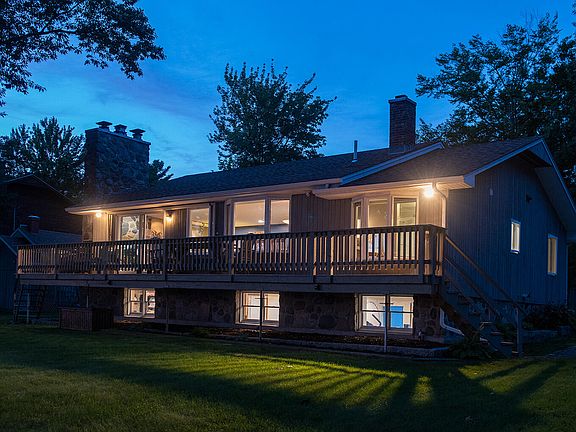 The location has all positive boxes checked: 3/4 acre lot with 132 feet of lakefront, level entry into the lake with concrete stairs, beautiful landscaping along with the town-maintained paved road, and trash collection, only twenty minutes from Downtown Bangor. The architecturally designed renovation is apparent throughout. Open kitchen, dining, and living room with outstanding water views, hardwood floors, custom cabinetry, granite countertops, fieldstone wall with gas fireplace insert, and sliding doors to the massive deck. The bathroom is a dream come true with the bay window, soaking tub, and tile shower. The two bedrooms on the main level have ample closets, and the half bath and laundry make one-level living possible. Downstairs is daylight and offers a double room that could be used as your primary suite, full bath with sophisticated bath, family room, exercise room, and plenty of storage. The bonus lake-side cottage is fully equipped with a full bath, kitchenette, and bedroom with a window seat! You must see this one!