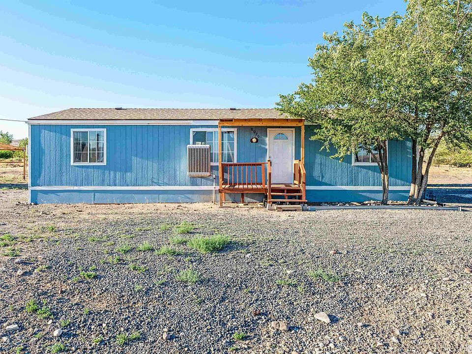 This beautifully converted manufactured home sits on a generous one-acre lot, offering stunning mountain and desert views. This home features 3 bedrooms and 2 bathrooms, perfect for comfortable living. Inside, the open-concept great room provides a spacious and inviting atmosphere. The fully fenced property ensures your privacy. Don't miss this unique opportunity to own a slice of paradise!, All information provided to be verified by the buyer and buyers agent. Final walk through constitutes satisfaction with information supplied herein and satisfaction with condition of the property as well as any completed repairs (if any). Seller will not close escrow until a signed final walk through or waiver has been received.