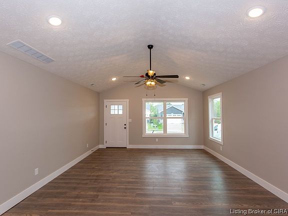 !!!MOVE IN READY!! Welcome to Floyd County’s newest subdivision, Henriott Meadows!!! This split floor plan home features vaulted ceilings in the living room and kitchen, along with laminate flooring. The kitchen has an abundance of cabinets with granite countertops as well as an island and pantry. Off of the dining room area, you will find the main bedroom that offers an accent wall, carpet, and two windows looking out to the back yard. The main bathroom has a double vanity, oversized tile shower, spacious walk-in closet and LVP flooring. The other two bedrooms are located down the hallway along with the second bathroom. The utility room offers your washer and dryer hook ups, HVAC and Water heater closet. Other features of this home include a covered concrete patio, oven, microwave and dishwasher. THIS IS TRULY A MUST SEE!! All sizes & measurements are approximate.