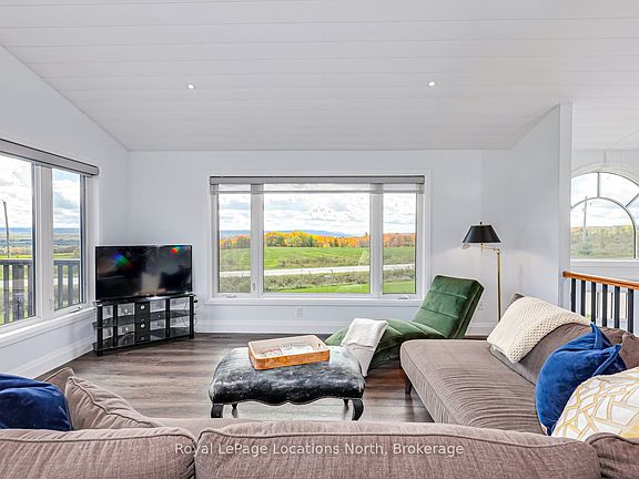 Panoramic views of the Beaver Valley from this 3 bed 3 bath raised bungalow in Grey Highlands. Filled with natural light. Main floor primary with 5-piece en suite, open concept kitchen/dining/living with walkout to huge deck overlooking breathtaking scenery. Fully finished walkout lower level. Almost 1 1/2 acres of property to enjoy. Close to trails, shops and restaurants in Thornbury and Kimberly, Beaver River access points, ski hills and more. A really exceptional location to enjoy all the great things the Beaver Valley has to offer.