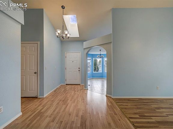 Beautiful and well maintained 2-bedroom, 2-bath main level living ranch located in Woodmen Hills. This inviting property offers comfort, functionality, and thoughtful updates throughout. Step inside to a bright entryway with a skylight that fills the space with natural light. The large living room provides plenty of space for relaxing or entertaining, and the formal dining room is perfect for gatherings. The kitchen features stainless steel appliances, ample cabinet space, pantry, and a convenient eat-in dining area for casual meals. The primary suite offers a private retreat with a cedar-lined walk-in closet, tiled shower, and tiled bathroom floor. A dedicated laundry room adds everyday convenience. Enjoy year-round comfort in the fully enclosed sunroom/porch, opening to a beautifully landscaped backyard—perfect for morning coffee or evening wind-downs. Perfectly situated close to parks and neighborhood schools. No HOA! Instead, you’ll have a Metro Utility payment that covers access to the Rec Center w/ pool, plus water, sewer, streetlights, and Parks & Rec fees—making it easy to enjoy all the neighborhood amenities without the hassle. This welcoming home combines classic ranch-style living with modern touches. Don’t miss your chance to make it yours! Additional highlights include: New windows in the kitchen and formal dining room with Integrated Rolscreen (a screen that appears when you open the window, and rolls away, out of sight, when you close it), washer and dryer stay, new blinds in kitchen.
