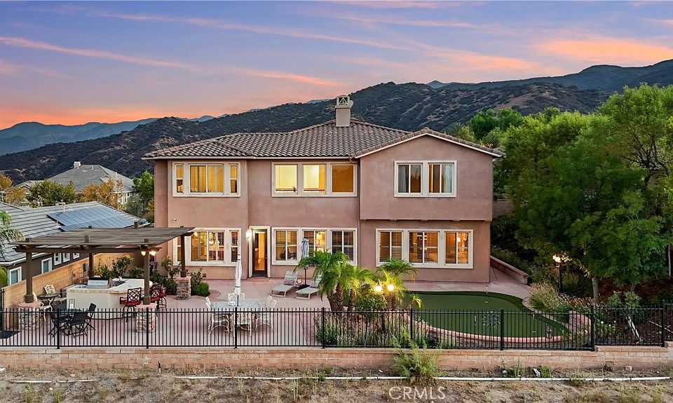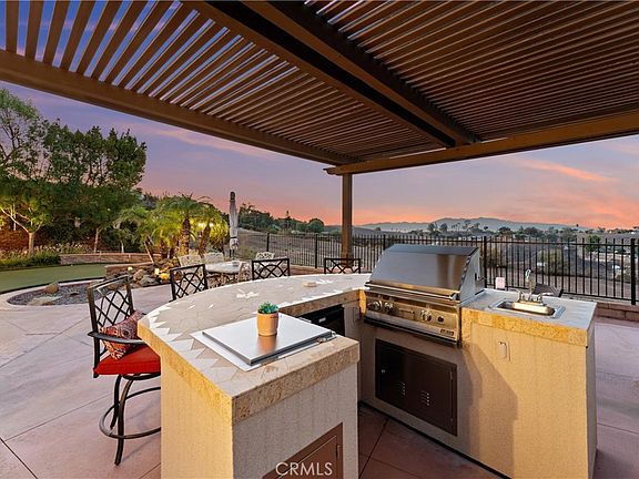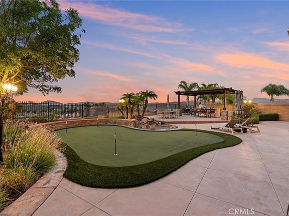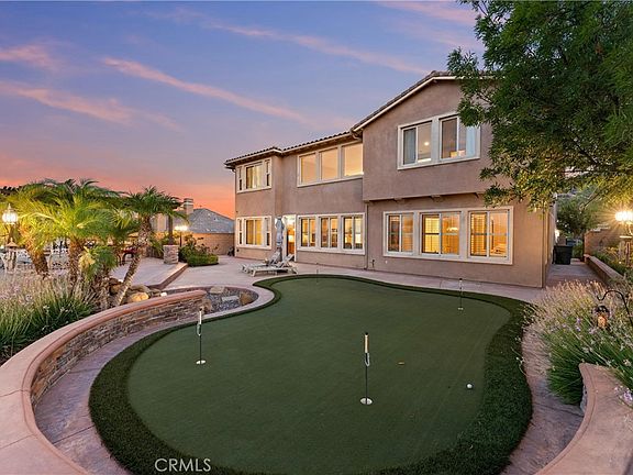5 BEDROOMS (INCLUDING DOWNSTAIRS PRIMARY + 3 SUITES) | 3-CAR GARAGE | Welcome to this prestigious executive estate, nestled in the sought-after Retreat Community where privacy, elegance, and refined living define everyday life. Enter through the oversized private courtyard and step into the grand formal entry, where soaring ceilings, custom mosaic tile, art display niches, wood flooring, and a sweeping staircase set the tone for timeless sophistication. The open-concept Family Room is both inviting and refined, boasting a gas fireplace, custom drapes, plantation shutters, and seamless access to the backyard. The chef’s Kitchen is designed for the culinary enthusiast, featuring an oversized island with breakfast bar seating, pantry, granite countertops, stainless steel appliances, butler’s pantry, pot and pan drawers, and coffee station, all flowing into the formal Dining Room. French doors from the formal Dining Room open to front courtyard for effortless entertaining. A bonus Living Room offers versatility as a music room, office, or more gathering space. The main-level Primary Ensuite Bedroom is a true retreat, highlighted by coffered ceilings, private sitting area, and serene views. The spa-inspired Primary Ensuite Bathroom features dual vanities, a deep soaking tub, oversized walk-in shower with bench, make-up vanity, and a custom walk-in closet with center island. Upstairs, 4 additional bedrooms offer unparalleled comfort. Bedroom #2 is oversized with its own bathroom and walk-in closet. Bedroom #3 features French doors and a full bath with granite counters. Bedroom #4, currently an office, includes its own ensuite and private balcony with sunrise views. Bedroom #5 completes this wing, ideal for multi-generational living. A separate Laundry Room with sink, cabinetry, and folding station adds convenience. The backyard is an entertainer’s paradise, complete with custom hardscape, stone waterfall, artificial turf, four-hole putting green, built-in BBQ with sink, refrigerator, and bar seating, all framed by low Maintenace wrought iron and block fencing. ENERGY EFFICIENCY: Solar panels, recessed lighting, & ceiling fans add efficiency to unmatched elegance. AMENITIES: Community pool, playground, basketball court, & fireplace. LOCATION: Quick access to 15 Expressway, 91 & 71 Freeways, & 241 Toll Road. This home is more than a residence—it’s a statement of luxury living.