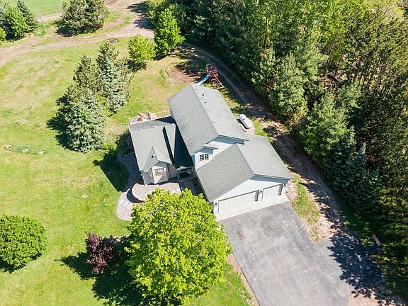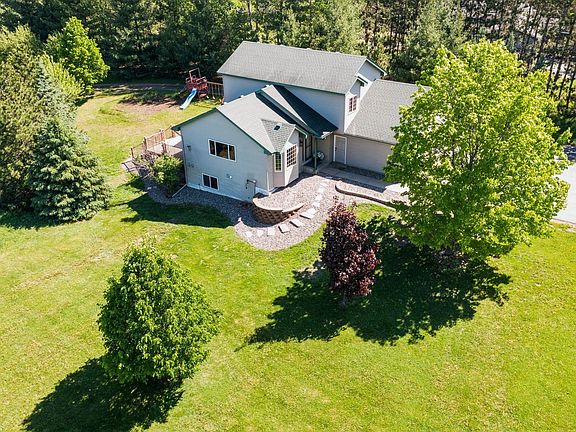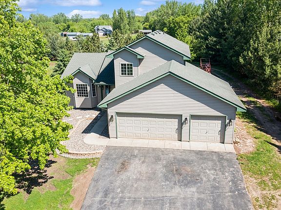 Welcome to this beautifully updated 5-bedroom, 3-bath modified two-story home, set on a stunning 4.65-acre lot that offers an “up north” feel while being just minutes to town! Step inside the inviting entry with a spacious closet, leading to a large living room featuring a cozy gas fireplace with built-ins. The kitchen boasts ample cabinetry, a pantry, a breakfast bar, and Frigidaire® stove (2023). An informal dining area walks out to a generous maintenance-free 14' x 30' back deck, perfect for enjoying breathtaking country views! The main floor also features a full bath and convenient laundry room equipped with a Speed Queen® washer and dryer (2020). The upper level boasts a full bath and three spacious bedrooms, including a large bedroom with a walk-in closet. The lower level is perfect for entertaining with a large family room and features two additional bedrooms and a lower-level walk-out. The beautiful modern-style cedar sauna, added in 2019, is adjacent to a ¾ bath with tile floors. The exterior of the home features a recently added insulated and heated garage (2023) with a service door. An expansive yard offers plenty of space to enjoy the outdoors, and the walk-out lower-level leads to a serene paver patio! An option is to add animals such as horses, and additional outbuildings. Several updates in recent weeks include new carpet throughout all upper bedrooms, stairways, and a lower-level bedroom; fresh paint throughout the entire home; new living room window glass; new light fixtures and ceiling fans; updated hardware in the kitchen, upper bathroom, and main floor bathroom; resealed kitchen cabinets; landscaping; new solid-core doors on main and upper levels; new storm door and exterior lights; painted exterior doors; and a new air conditioning installed. Additional recent updates include a new dishwasher (2024), updated blinds (2024). The home also features an air-to-air exchanger and reverse osmosis water system. Conveniently located close to retail, entertainment, parks, Elk River schools, and more! Approximately 30-40 miles to the Twin Cities downtown area, and one year home warranty included!