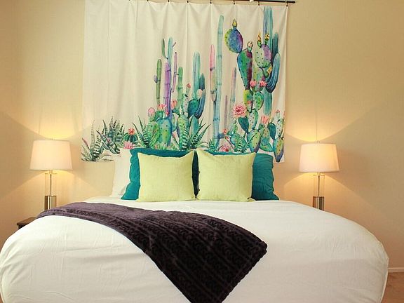 Welcome to Canyon Trail Resort! Beautiful & private detached single family home perfect for a relaxing retreat. The backyard is a true desert oasis with a huge green space and large pool. Sun or shade, this house has it all. Great layout for a warm vacation vibe and relaxing with friends and family. You ll love the lush landscaping and tons of seating/lounging areas for every taste. Lots of outdoor games and pool toys provided. Great Dining, Parks, Hiking, Shopping, Tennis & Golf all close-by.