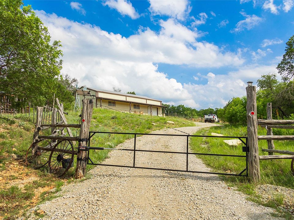Outside, the property includes an oversized one-car garage, seamless gutters, a 250-gallon propane tank, RV hookups, and a 20-foot shipping container for storage. The 8-acre setting offers open space, trees, and plenty of room to roam, with an inviting deck for outdoor entertaining. Whether you’re looking for a peaceful full-time home or a weekend retreat, this barndominium provides the perfect blend of craftsmanship, comfort, and Central Texas country living.